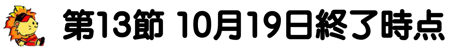 3勝4敗1分 | 13 | 13 | 1 | .500 | 4 |